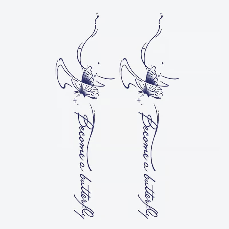 Embrace transformation with this butterfly quote temporary tattoo. Featuring elegant design and vegan ink, it’s waterproof and long-lasting for a stylish statement.