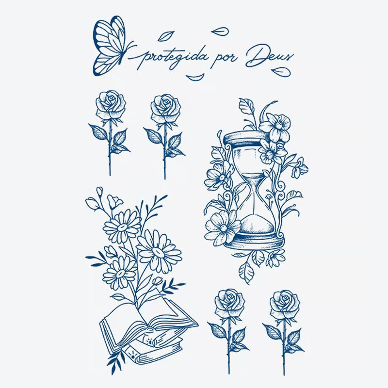 Embrace elegance with this Butterfly Rose Hourglass Book temporary tattoo. Featuring intricate designs, it's waterproof, long-lasting, and made with vegan ink for a stylish statement.