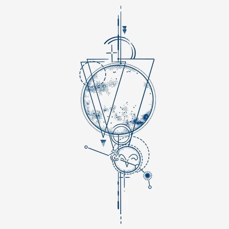 Embrace the cosmos with this geometric space elements temporary tattoo. Featuring minimalist black designs, it's waterproof, long-lasting, and crafted with vegan ink.