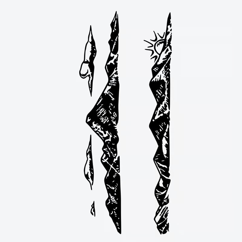 Experience the beauty of nature with this waterproof, realistic, long-lasting temporary tattoo featuring mountain peaks and sunrise, crafted with vegan ink for a sustainable choice.
