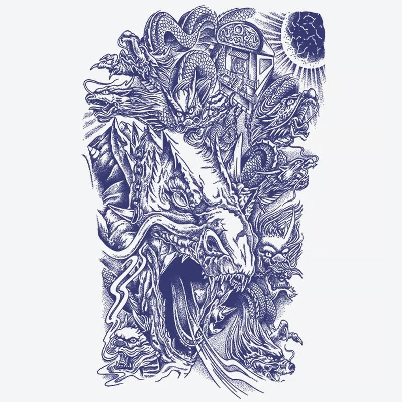 Unleash your dark side with this Dragon Serpent Horror temporary tattoo. Featuring a captivating design in realistic detail, it's waterproof, long-lasting, and made with vegan ink.