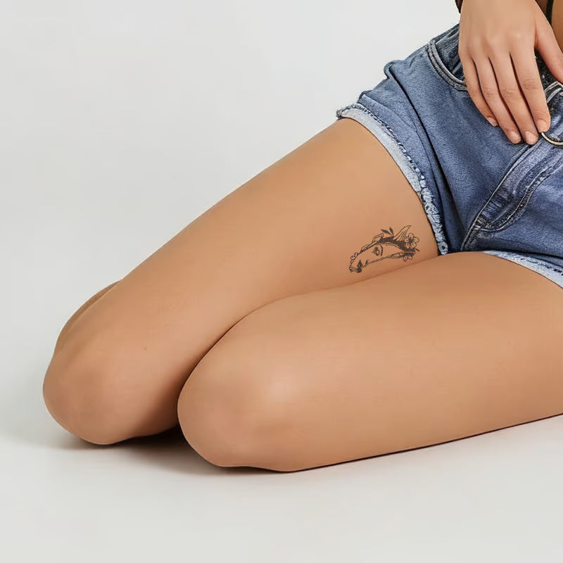 Discover our Floral Face Outline Tattoo! Waterproof, realistic, long-lasting, and made with vegan ink—perfect for a stylish, temporary body art expression.