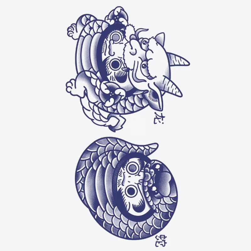 Embrace tradition with this Koi Dragon temporary tattoo, featuring realistic designs in waterproof, vegan ink. A stylish symbol of strength and transformation.