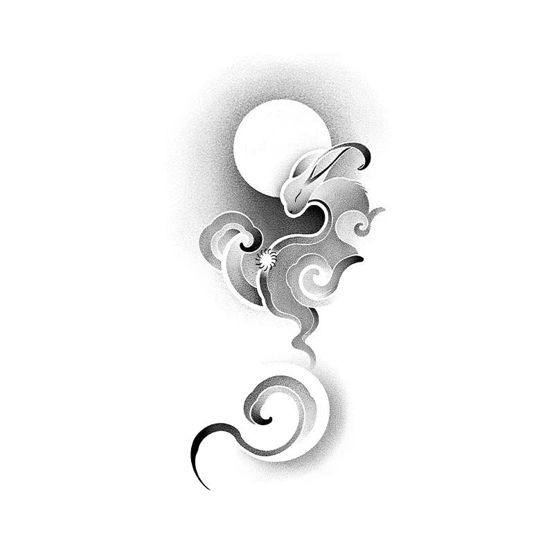Moon Rabbit Clouds Tattoo