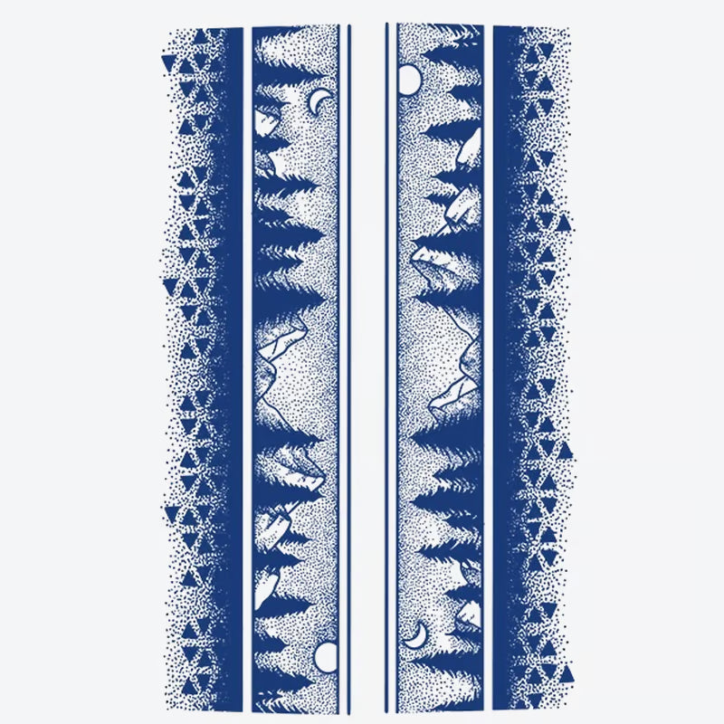 Discover the Mountain Landscape Stripes Tattoo: waterproof, realistic, long-lasting design made with vegan ink for a stunning, eco-friendly body art experience.