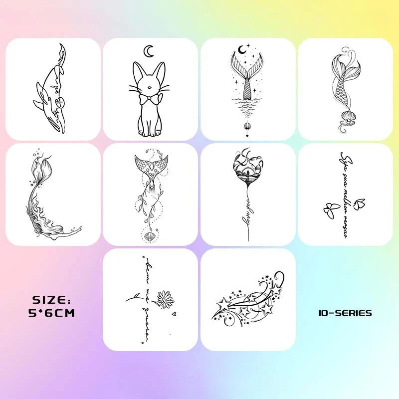Skin-safe semi-permanent, colorful, and makeup temporary tattoo stickers. Easy to apply, non-toxic, and perfect for parties, festivals, or daily wear.