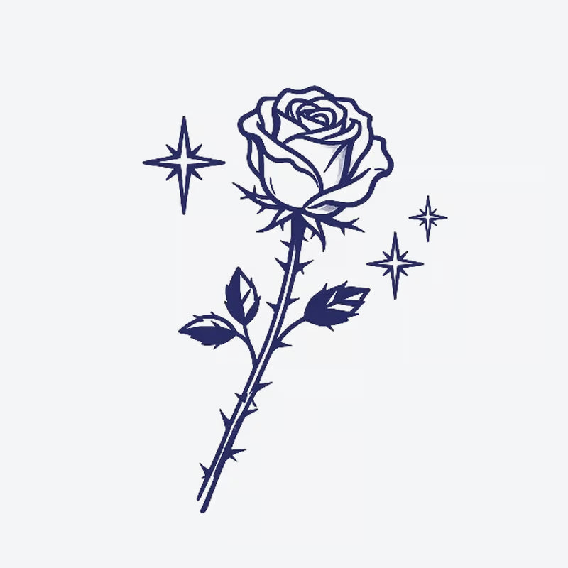 Embrace elegance with our Rose Starburst temporary tattoo. Featuring a minimalist design, it's waterproof and long-lasting, perfect for a touch of floral chic.