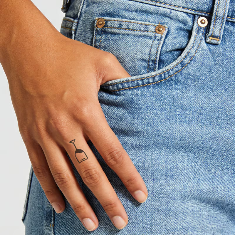 Stylish wine glass silhouette temporary tattoo. Waterproof, realistic design made with vegan ink. Long-lasting for all your occasions. Perfect for wine enthusiasts!