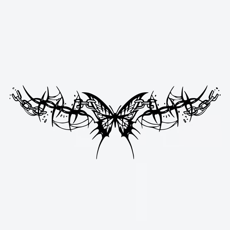 Embrace edgy elegance with this Butterfly Chain temporary tattoo. Featuring a minimalist design, it's waterproof, long-lasting, and crafted with vegan ink for a stylish statement.