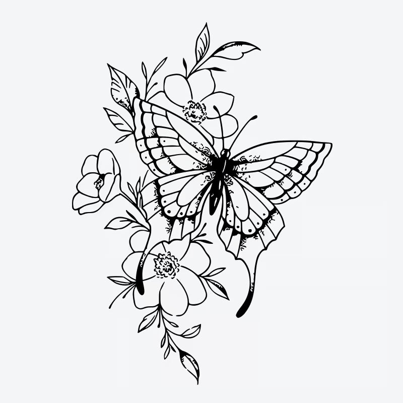 Embrace nature's beauty with this Butterfly Floral Tattoo. Crafted with realistic detail, it features waterproof, long-lasting vegan ink for effortless elegance.