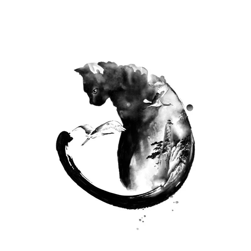 Cat Bird Landscape Tattoo