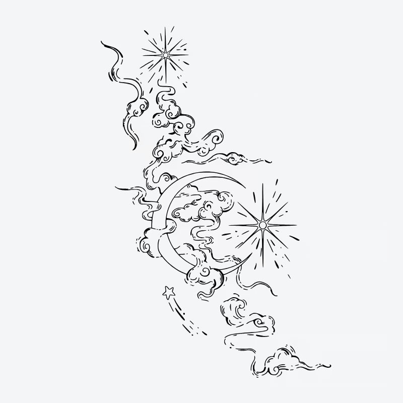Express your celestial style with our realistic, waterproof temporary tattoo featuring clouds and moon, crafted with long-lasting vegan ink for a stunning look.