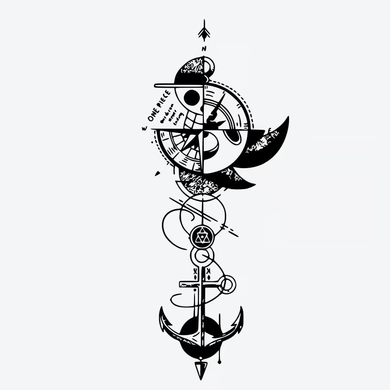 Embrace adventure with this minimalist Compass Anchor Moon temporary tattoo. Featuring intricate designs, it's waterproof, long-lasting, and crafted with vegan ink for a stylish statement.