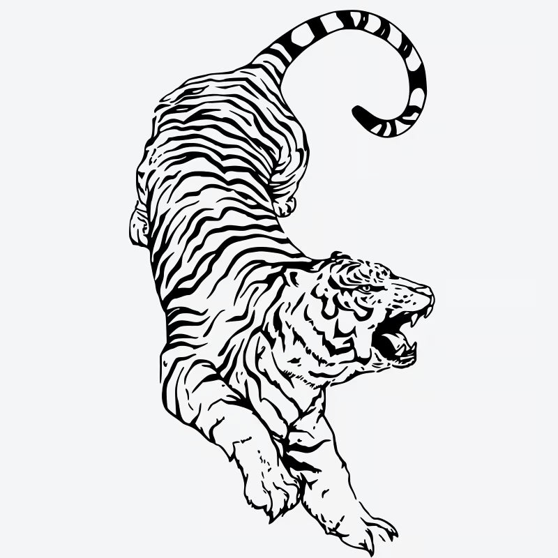 Unleash your wild side with this realistic Jumping Tiger temporary tattoo. Made with vegan ink, it's waterproof and long-lasting for fierce style!