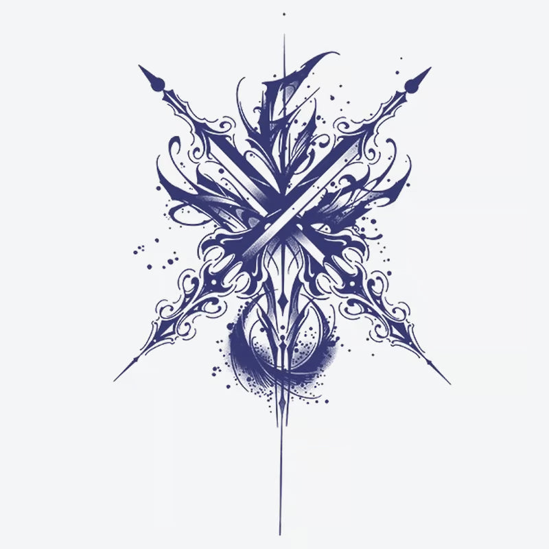 Embrace elegance with the Ornate Sword Flourish Tattoo. This realistic, waterproof, temporary tattoo features intricate designs and vegan ink for a striking statement.
