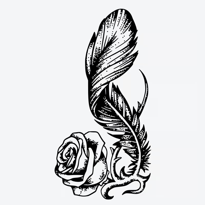 Embrace elegance with this Rose and Feather temporary tattoo, featuring realistic designs in vegan ink. Waterproof and long-lasting for a stylish statement.