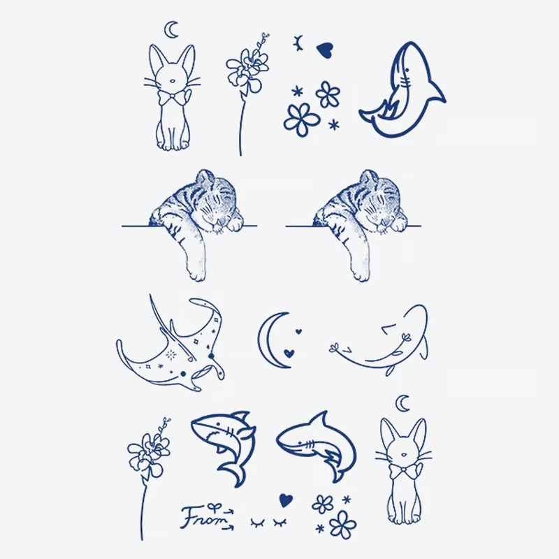 When you first apply a semi-permanent tattoo sticker, the ink appears light blue. This is completely normal—it will gradually deepen into a natural, tattoo-like shade within 24–36 hours. Our temporary tattoo stickers, by contrast, show their full design instantly upon application.